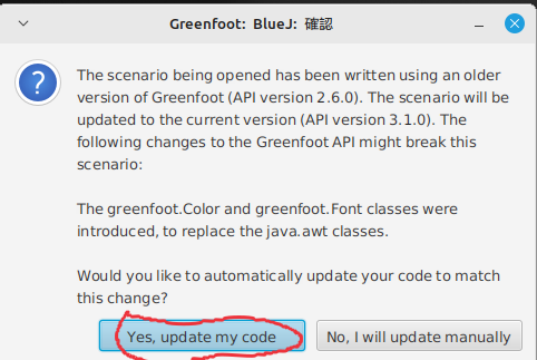 古いバージョンのファイルなので、下のような確認が出ますので赤丸をクリック。